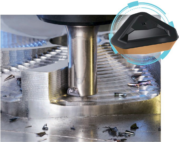 Тангенційний спосіб закріплення пластин на фрезі дозволяє зберегти жорсткість при високих силах різання. Фрези можуть виконувати врізання під кутом 4°. Великий радіус пластин сприяє кращій якості обробки поверхні стінок виробів зі сталі, чавуну та жароміцних сплавів.